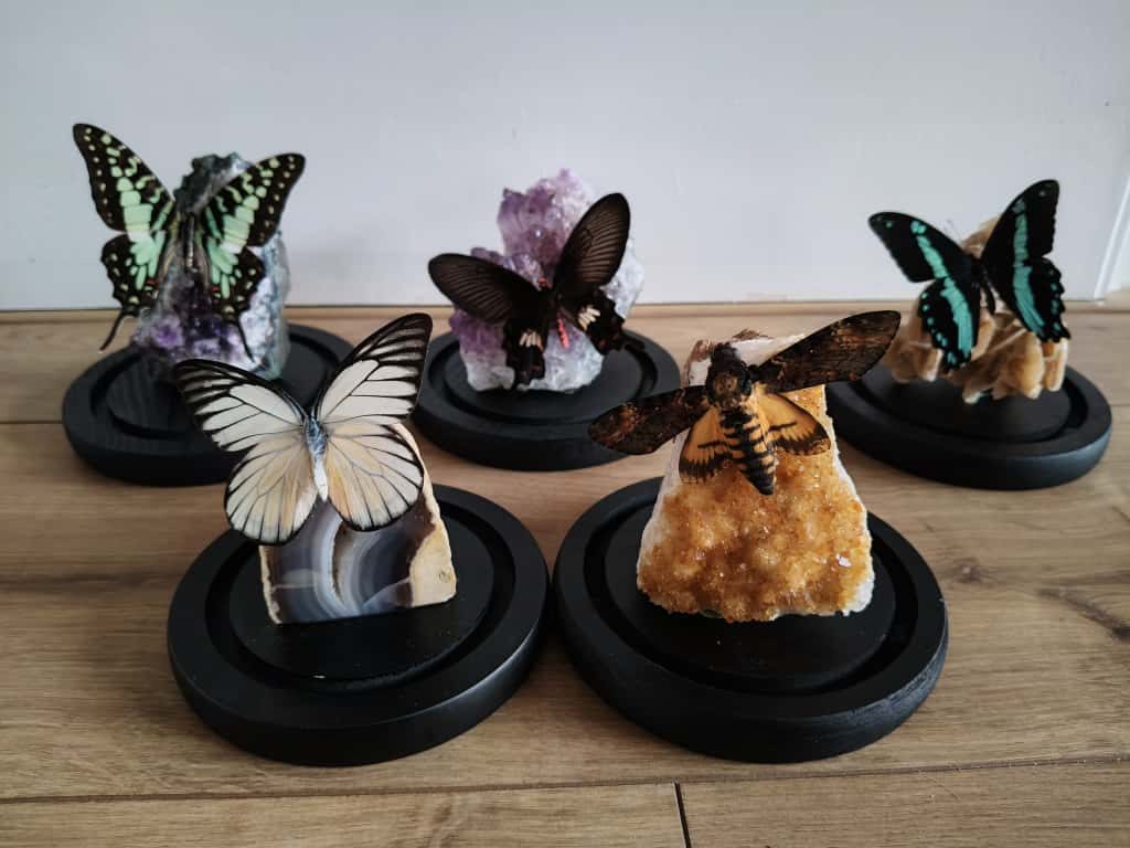 De vlinders worden met zorg geprepareerd. Elke creatie is uniek. Van elke creatie is er altijd maar 1!